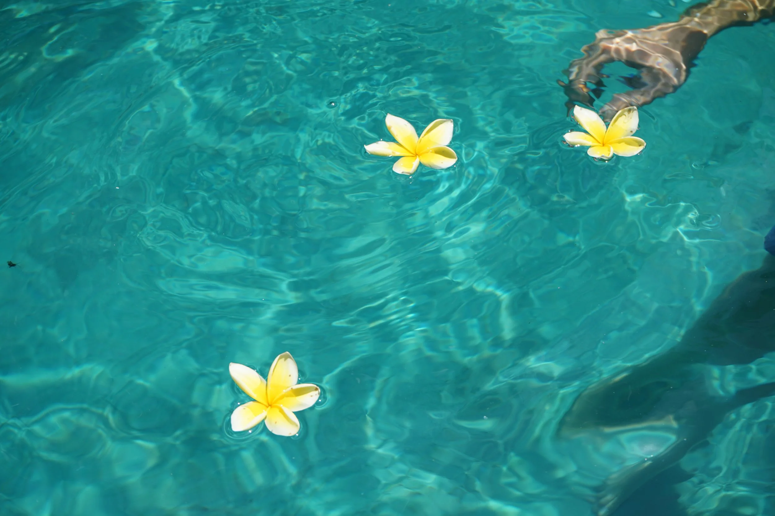 Und auch im Pool sind die Blüten hübsch anzusehen.