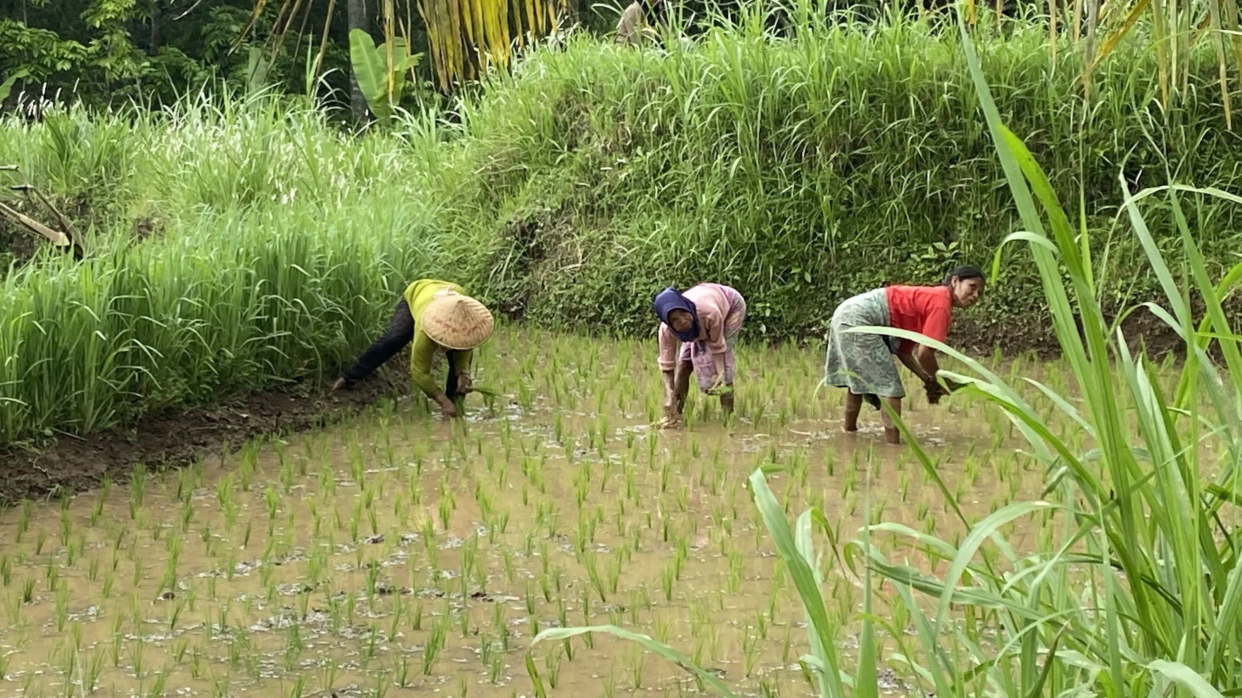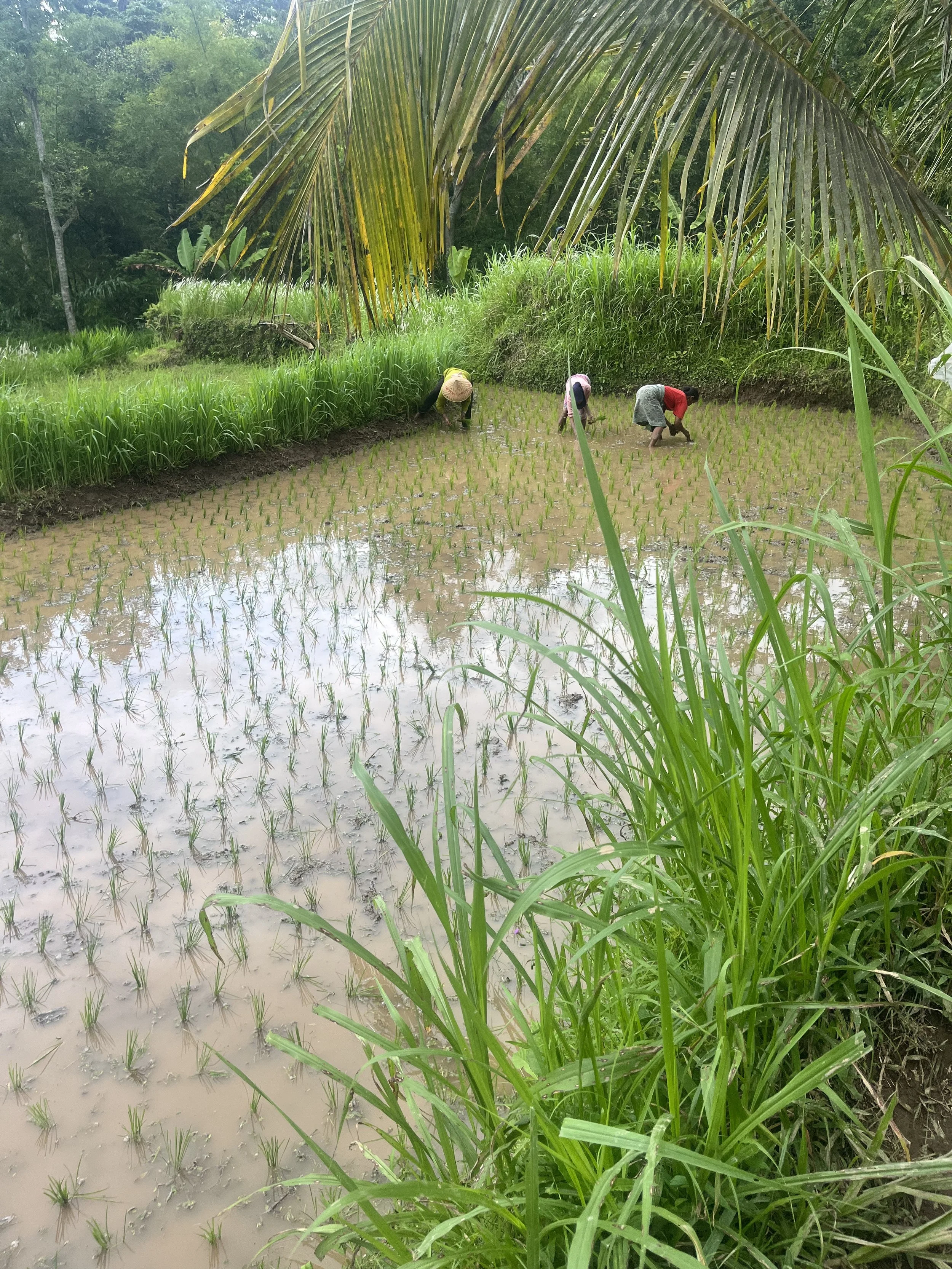 Den Reisanbau mit allen einzelnen Schritten finde ich so beeindruckend und eine kleinteilige Handwerksarbeit. Wenn wir heute Abend wieder im Warung essen, werde ich jedes einzelne Reiskörnchen nochmal mehr zu schätzen wissen. Wir lernen auch, dass Frauen für das Pflanzen von Reis und die weitere Pflege zuständig sind. Die Männer hingegen sieht man vorab die Felder umpflügen. Die meisten der hier lebenden Familien besitzen ihre eigene Reisfelder.