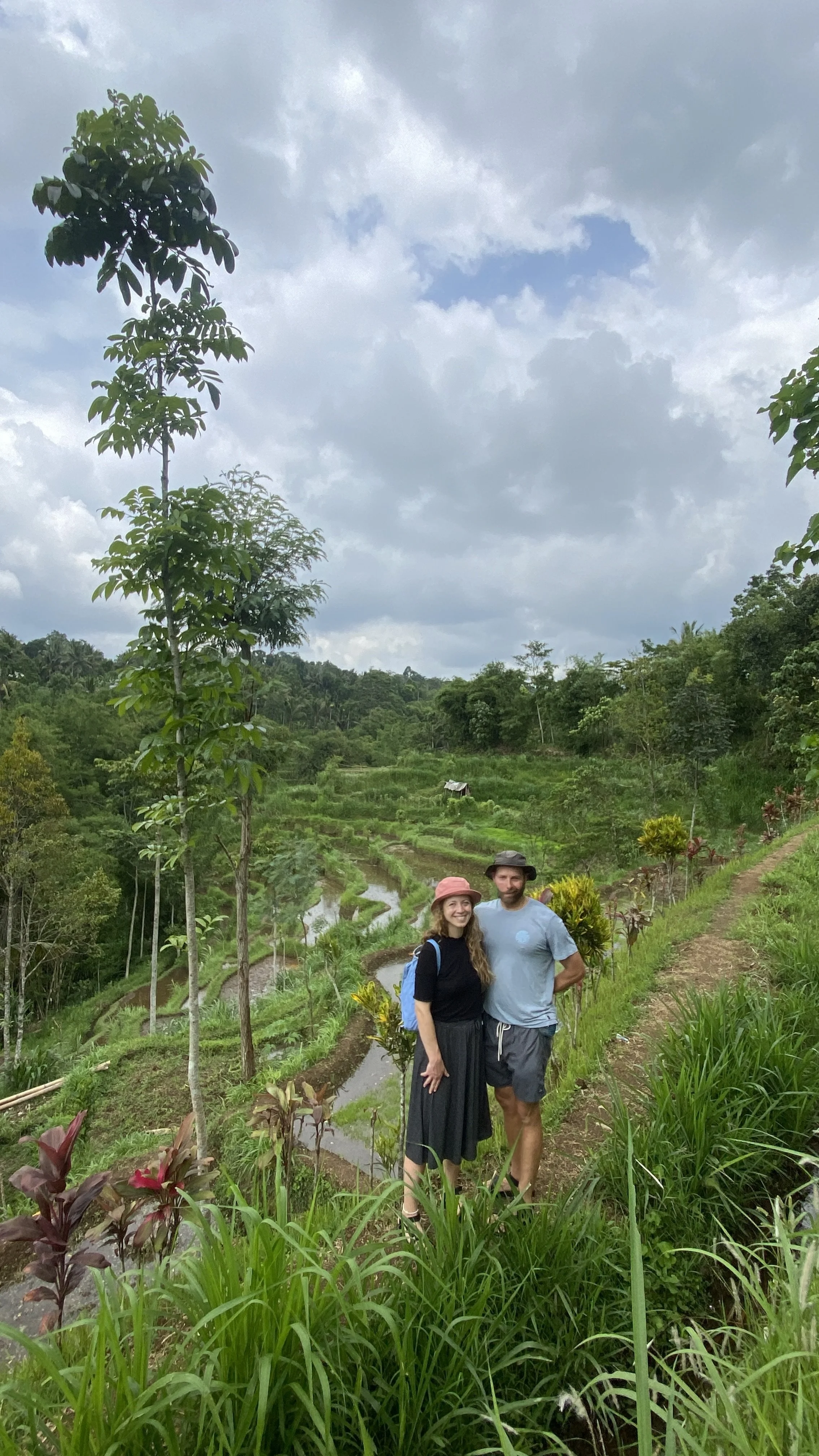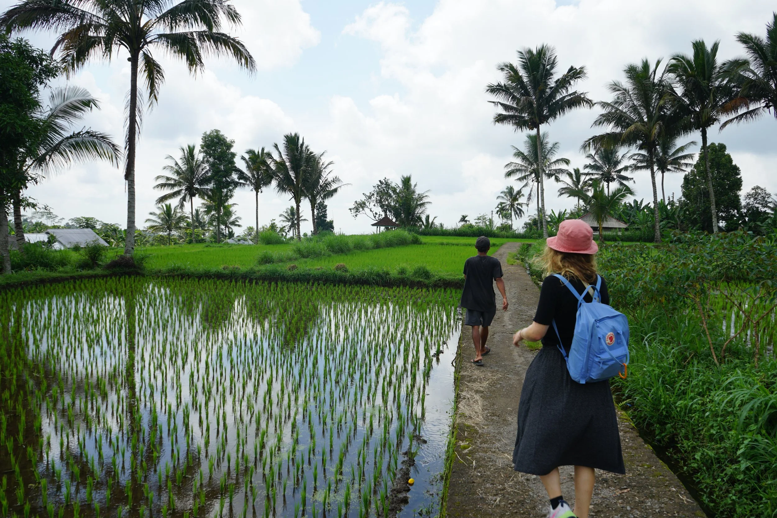 Umgeben von einer endlosen Anzahl von Reisfeldern, darf natürlich eine Tour durch eben diese nicht fehlen. So machen wir uns am nächsten Morgen mit Roons jüngerem Bruder Astro auf den Weg. Ich bin manchmal erst skeptisch, wenn ich solche Aktivitäten „buche“, denn ich mag es einfach nicht, mich wie der „größte Touri aller Zeiten“ zu fühlen 😉. Aber diese Tour durch die Reisfelder mit Abkühlung in zwei Wasserfällen und einem Abschluss im Black Monkey Forest ist richtig lohnenswert und authentisch.
