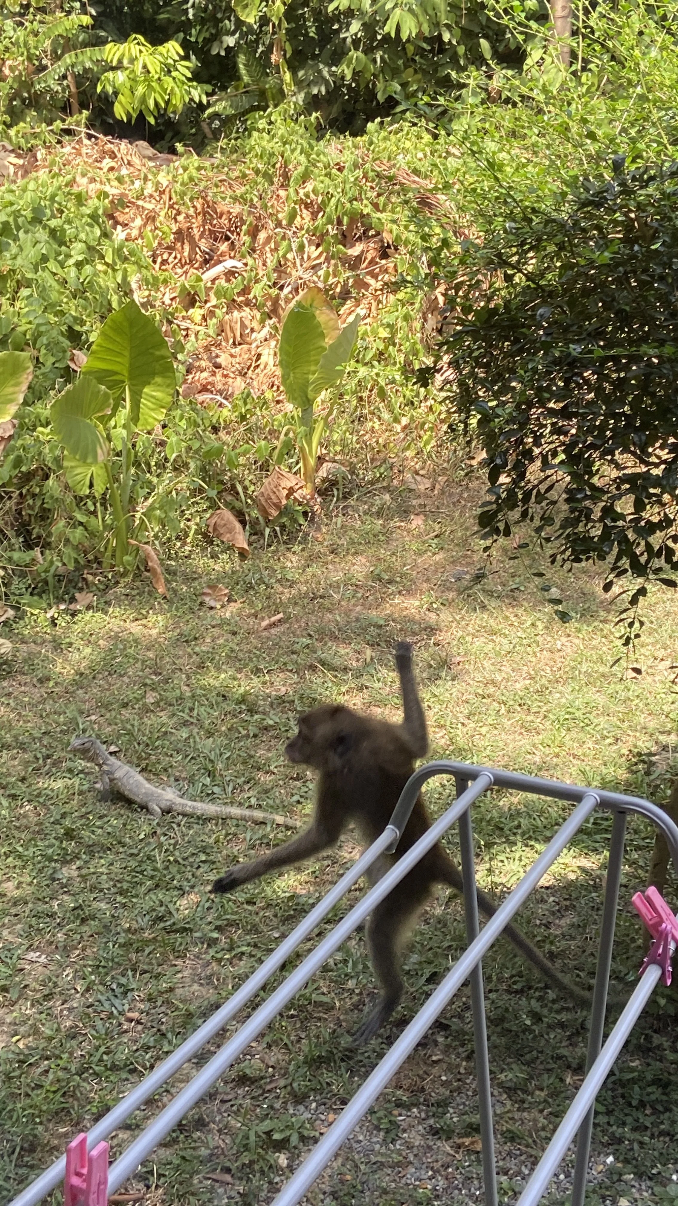 Auf Ko Lanta haben wir nach längerem Suchen noch eine schön anmutende Unterkunft im Süd-Westen der Insel gefunden. Hier soll es auch die schönsten Strände geben 😊. Eigentlich waren wir in unserer Reiseplanung immer davon ausgegangen, dass Thailand eines der günstigsten Reiseländer wird. Das können wir direkt zu Beginn – bezogen auf die Unterkunftspreise – jedoch nicht validieren. Die Unterkünfte, die bei Booking zu finden sind, sind schon eher im oberen Preisniveau einzuordnen und auch, wenn man bereit ist mehr Geld pro Nacht in die Hand zu nehmen, wird es nicht gerade schöner oder komfortabler. Das haben wir in Indonesien anders empfunden. Und eben auch, dass dann auf Fotos und Beschreibungen die Klassifikationen der Unterkünfte deutlich wurden. Vielleicht sind wir aber auch einfach zu spät und spontan dran. Unsere erste Unterkunft ist auf jeden Fall ganz schön und wird von einem sehr sympathischen italienischen Paar geführt. Neben den Gastgebern werden wir dann auch gleich bei Ankunft von einer ganzen Gang von Affen erwartet. Aiaiaia, das kann ja was werden. Eigentlich hatte ich vorgehabt ein bisschen Yoga auf der Terrasse zu machen, zu lesen und hier zu entspannen. Mir wird jedoch schnell klar, dass das nicht so umsetzbar ist, da die tierischen Gesellen gerne in nächster Nähe zu uns herumtollen. In der Nacht poltert es plötzlich laut, da die monkeys auch auf den Bungalowdächern herumtoben.