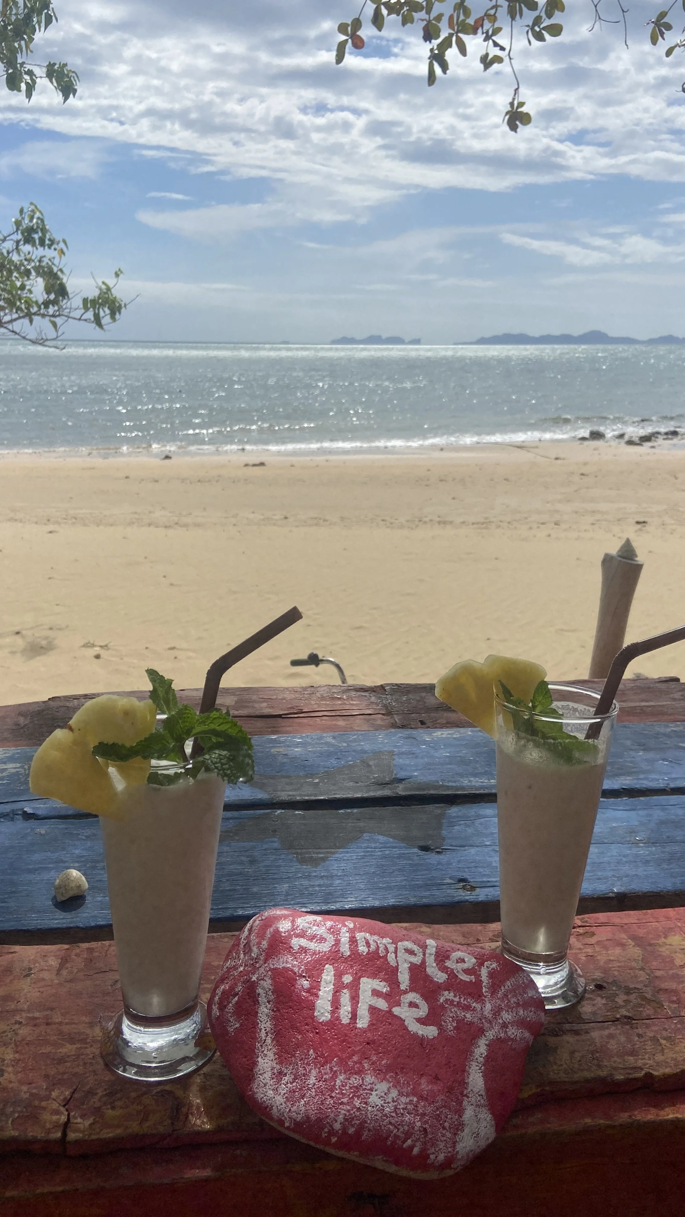 Auf Ko Lanta erleben wir dann an einem Tag auf dem Rückweg von einem kleinen Beach einen super heftigen Regenschauer, während wir auf dem Scooter sitzen. Wir haben riesig Glück, denn es tut sich auf der eher einsamen Strecke noch ein Café auf und die Besitzer gewähren uns Zuflucht. Dieser Moment war so unglaublich nett als wir klitschnass und leicht am frieren noch die Möglichkeit bekamen uns mit einem Kaffee wieder aufzuwärmen und den gröbsten Regen abzuwarten. Als kleines Geschenk bekommen wir dann noch gefühlt den Ertrag einer gesamten Bananenstaude geschenkt. Verrückt nett und so gastfreundlich. Passenderweise gibt es in Ko Lanta Old Town einen leckeren Smoothie Stand, der die Bananen zu Fruchtshakes weiter verarbeiten kann 😊.