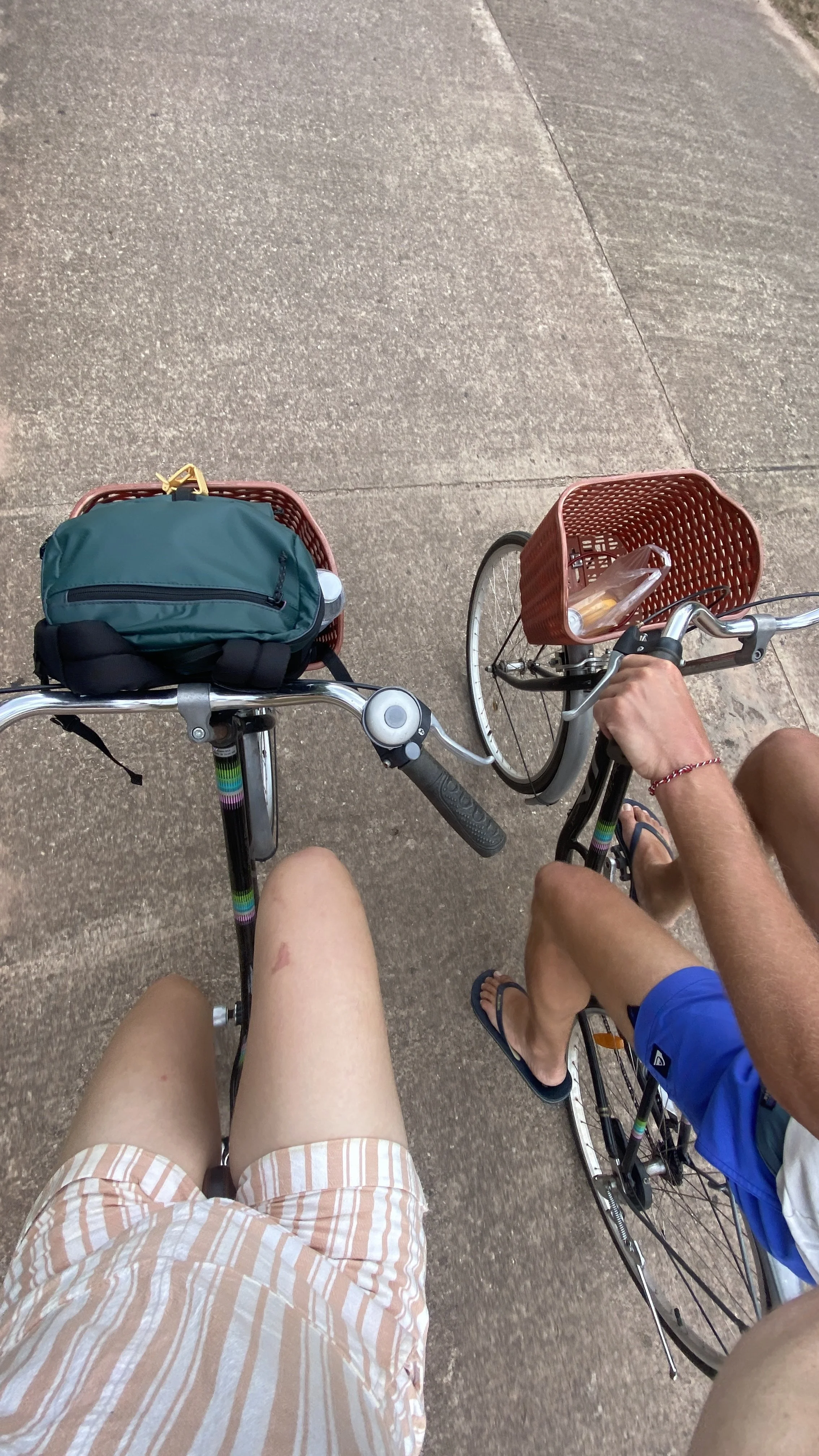 Zurück zu Hause wollen wir uns dann noch an einen schönen Strand aufmachen, welchen wir den Tag zuvor schon über die andere Straßenrichtung entdeckt haben. Ich denke mir, dass es doch auch schön ist, den Strand von der anderen Seite zu befahren und wir machen uns auf den Weg. Johannes hat da schon so ein Gefühl, was sich alsbald bestätigt. Wie herauszulesen ist, sind wir mit Rädern unterwegs, und auf Google Maps sah der Weg in meinen Augen ganz klar, wie eine asphaltierte Straße aus. Nach nur einigen hundert Metern wird diese aber eher zum Trekkingweg.