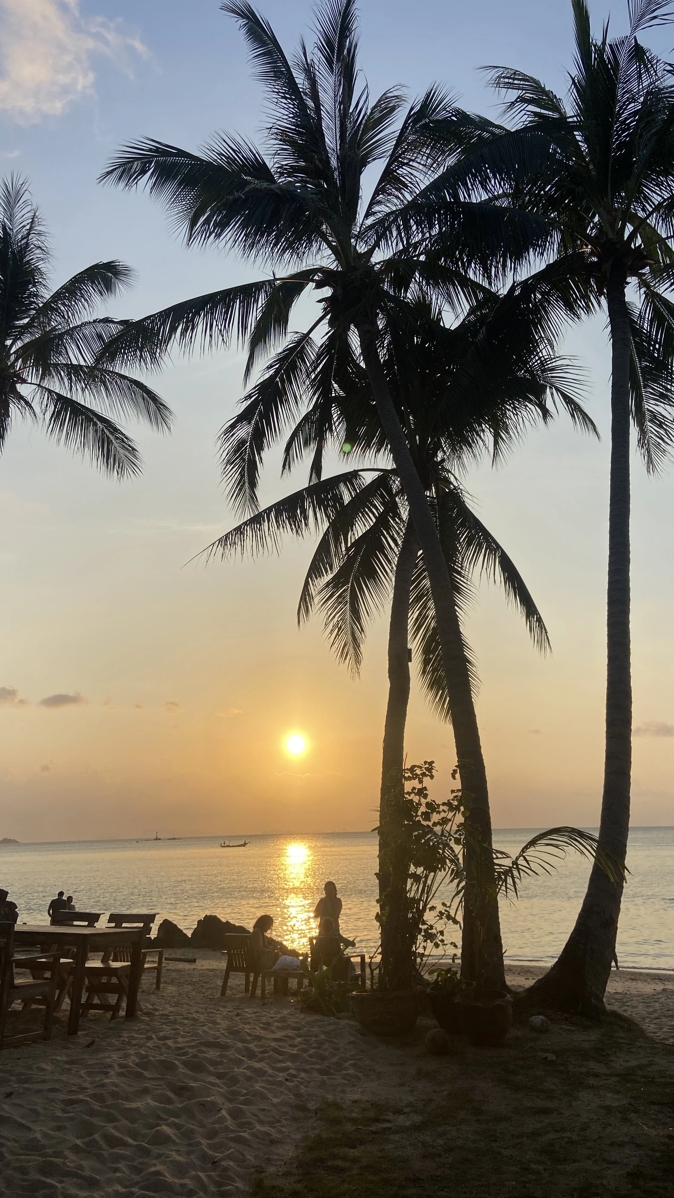 PAD THAI – so heißt mein Hauptnahrungsmittel der letzten zwei Wochen und es hat ganz klar Nasi Goreng aus Indonesien abgelöst. Ich bleibe wohl in jedem Falle Omas “Nudelkind”. An einem Abend machen wir mal eine Ausnahme und gehen statt thailändisch israelisch essen. Während wir die Pita in den Hummus dippen sind wir zum richtigen Moment am richtigen Ort, denn am Strand gibt es noch ein ganz chilliges Dj Set und einen Sonnenuntergang, der eigentlich schon meinen Laptop-Hintergrund zieren müsste.