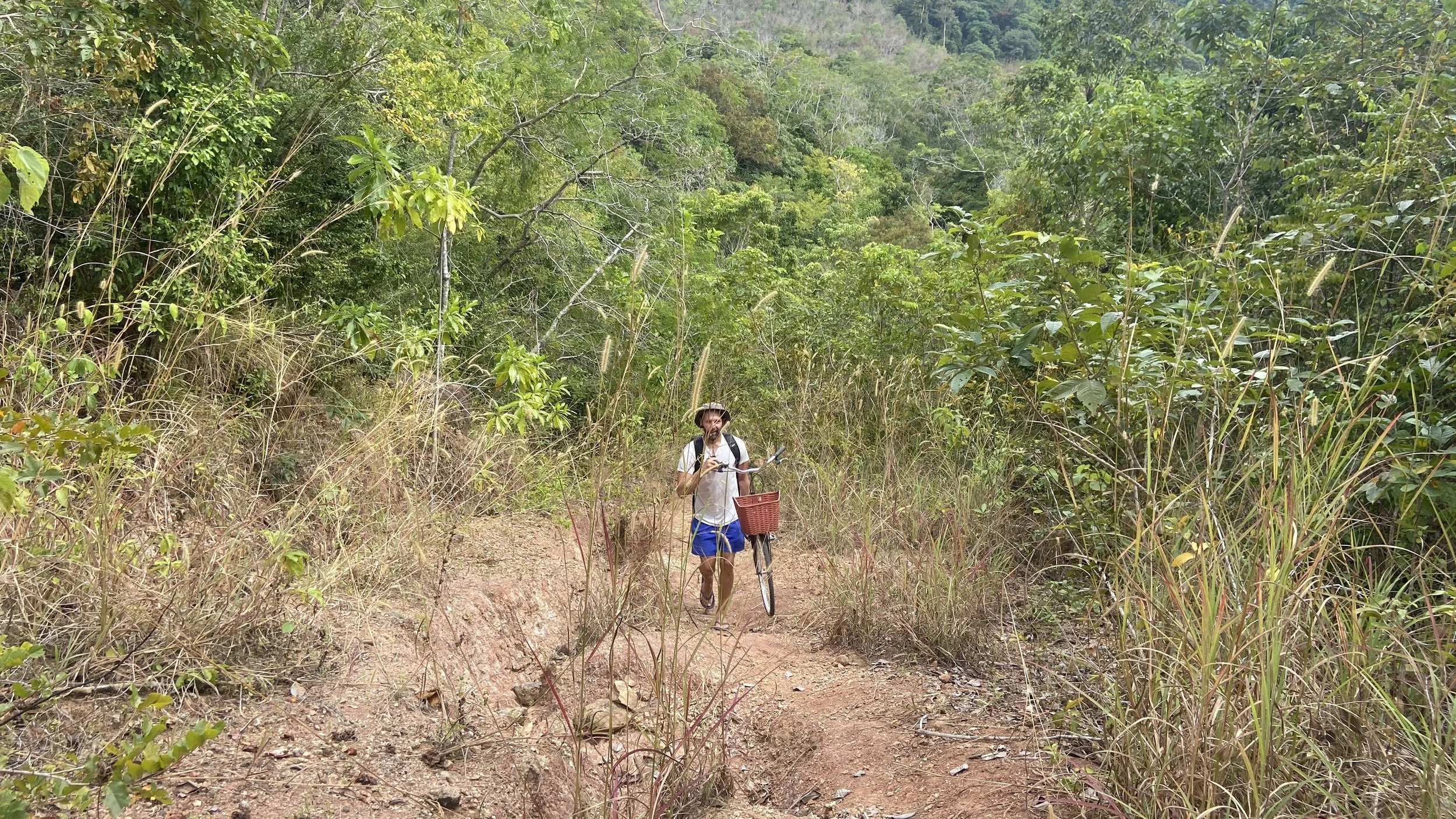 Und was machen wir? Wir ziehen es 1,5 Stunden durch und machen teils mal leicht rollend, dann wieder nur schiebend und tragend quasi ein Fahrradtrekking, bis wir es über diese „off-Road-Straße“ runter an den Beach geschafft haben. Die Stärkung im „Simple life“ schmeckt natürlich besonders gut. Und ein bisschen ironisch war diese Situation in jedem Falle, denn während wir uns für das morgendliche Trekking durch unseren Guide haben begleiten gelassen, hätten wir bei dieser Aktion ebenso gut Schlangen & Co. begegnen können. Sind wir jedoch nicht 😉.