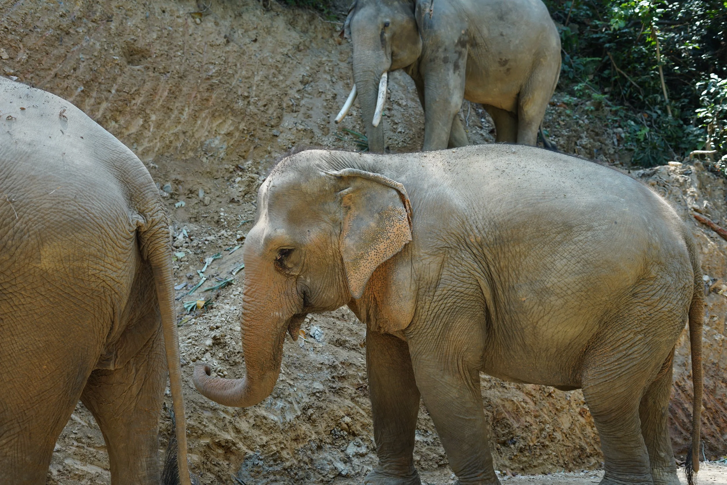 Ich habe bisher noch nie die Möglichkeit bzw. das Reiseland gehabt um an einer Safari teilzunehmen. Auf Ko Lanta bietet sich uns die Möglichkeit 6 Elefanten auf natürliche Art und Weise näher zu kommen. Die Dickhäuter leben hier in einer Auffangstation nachdem sie jahrelang als Arbeitstier oder Touristenattraktion gearbeitet haben. Die Foundation hat es sich zur Aufgabe gemacht, dass man die Elefanten nicht mehr streicheln, baden oder gar auf ihnen reiten darf. Stattdessen folgen wir den beeindruckenden Schwergewichten auf unserer Tour durch ihr Areal so unauffällig wie nur möglich. Ich bin richtig beeindruckt und finde es spannend auch mehr über die einzelnen Persönlichkeiten der Elefanten zu hören.