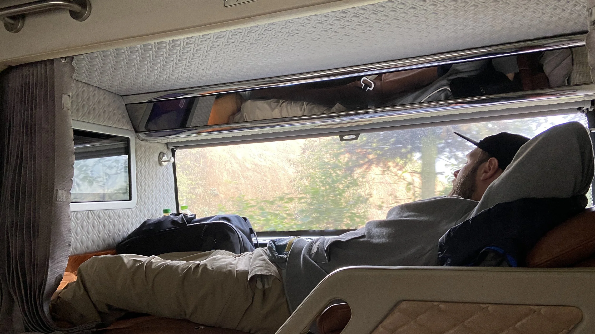 Als Erstes bekommen wir unsere Betten im „sleeper bus“ zugewiesen. Es ist doch ein abgefahrenes Gefühl in einem Verkehrsmittel mal so richtig horizontal liegen zu können. Das habe ich bisher auf jeden Fall noch nicht gehabt. Und im Flugzeug würde mir das bei langen Strecken definitiv helfen um mal richtig schlafen zu können. Jetzt fühlt es sich für mich fast ein wenig schräg an, dass ich bis 13 Uhr liegen „darf“ 😉.