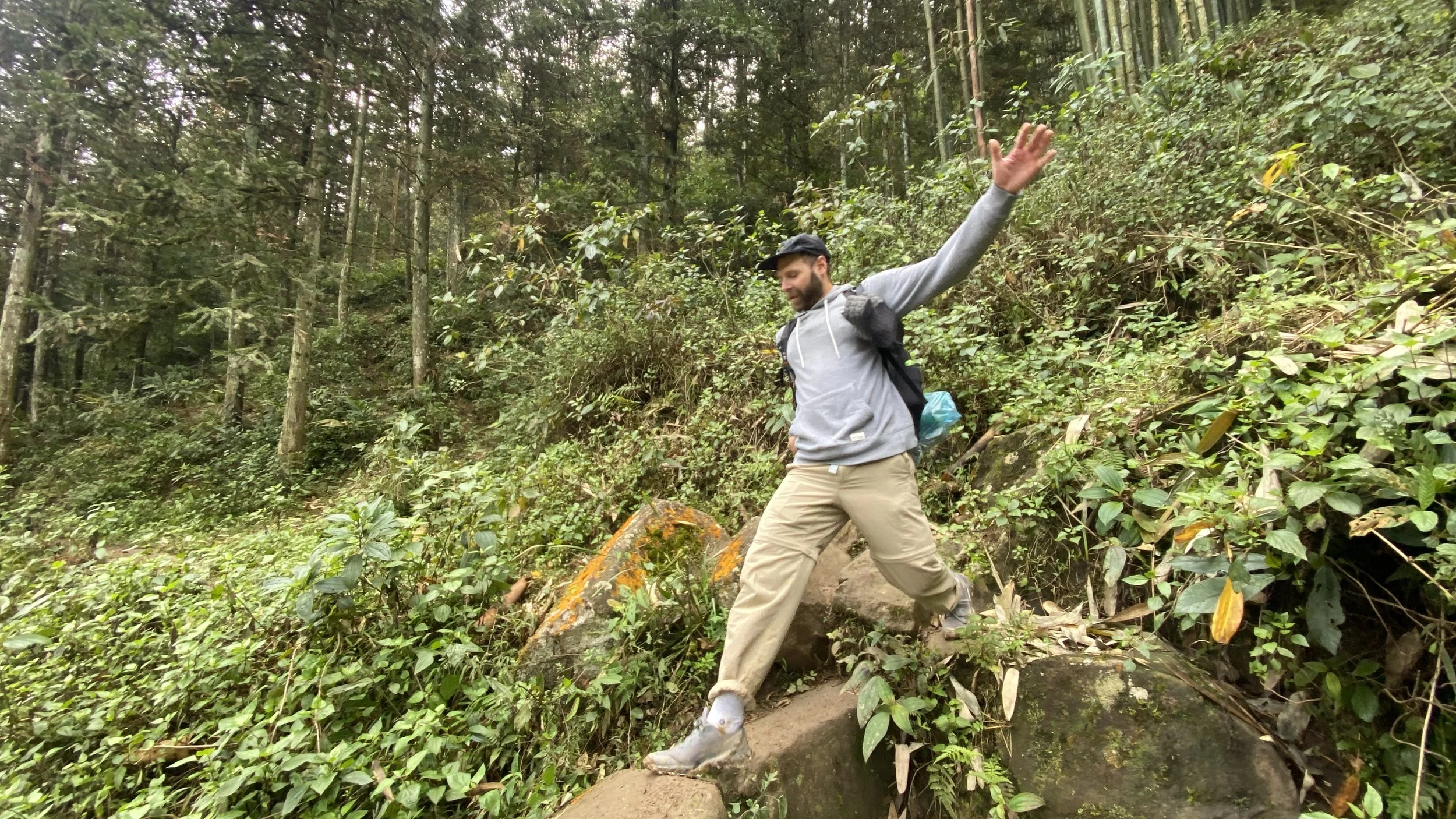 Nachdem wir uns am nächsten Morgen bei einem Kaffee aufgewärmt haben, geht es weiter auf Teil 2 der Wanderung. Für die anderen vier unserer Gruppe ist das auch schon die letzte Strecke. Der Weg durch den Bambuswald macht Spaß und in eigenem festem Schuhwerk ist das auch nicht mehr ganz so rutschig. Schönerweise hat es über Nacht etwas aufgeklart und wir sehen mehr von der malerischen Umgebung.