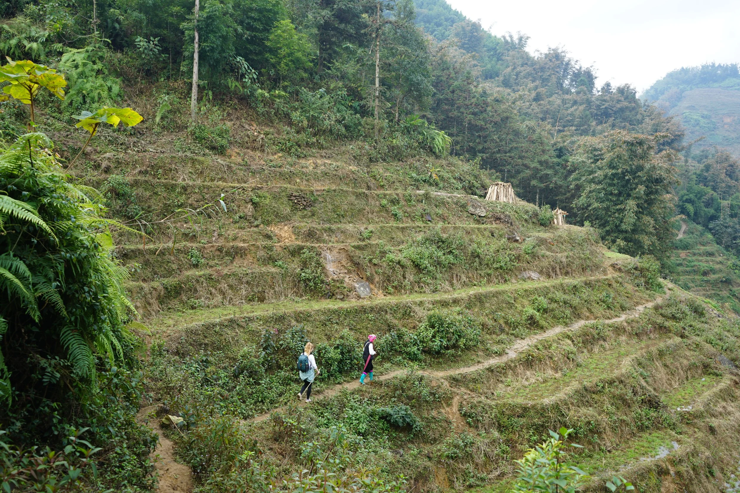 Beim Ausstieg aus dem Bus können wir uns kaum vor weiteren Angeboten für Führungen oder Taxifahrten retten: “Thank you, we already have a tour“ und dann werden wir auch schon mit einem kleinen Taxi zu einem Hotel gefahren in dem wir den Ablaufplan erhalten und nach einem Mittagessen auf unsere Guide Dinh treffen. Diese finde ich direkt richtig sympathisch. Dinh gehört zum Stamm der Hmong (indigenes Volk in Ost- und Südostasien) und wird uns die kommenden Tage durch die ihr vertrauten Dörfer, Reisfelder und Wanderwege führen. Wir wundern uns noch, dass wir jetzt beide Nächte im gleichen „Home-Stay“ verbringen sollen und weniger Wanderkilometer als gebucht auf dem Ablauf stehen und merken das auch an. Als Erklärung erhalten wir die Antwort, dass es im anderen home-stay keine “private rooms” gäbe. Im Nachgang wäre hier vielleicht schon der Zeitpunkt gewesen, wo wir noch mehr hätten nachfragen sollen…