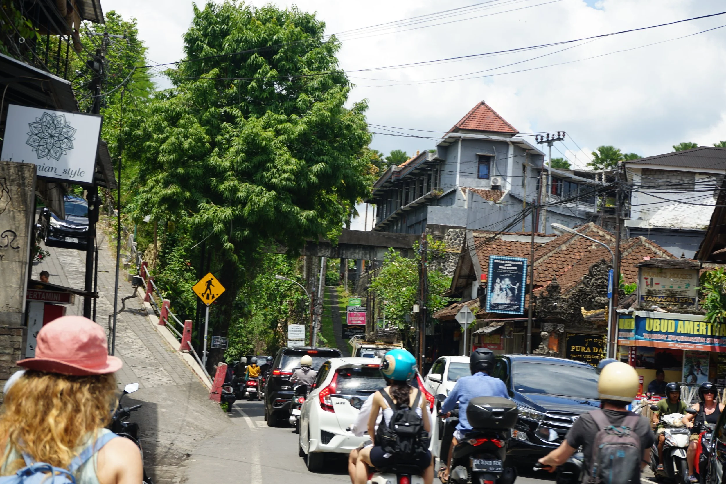 Als wir uns auf die Hauptstraßen von Ubud auf machen, merken wir blitzschnell in was für einem lauten und hektischen Treiben wir hier gelandet sind. Auch mal eben die Straße zu überqueren wird zu einer kleinen Aufgabe. Da muss ich mir tatsächlich mal ein schnelleres Reaktionsverhalten angewöhnen und ein bisschen mehr auf zack kommen, wenn ich nicht minutenlang auf der anderen Seite warten möchte 😉.